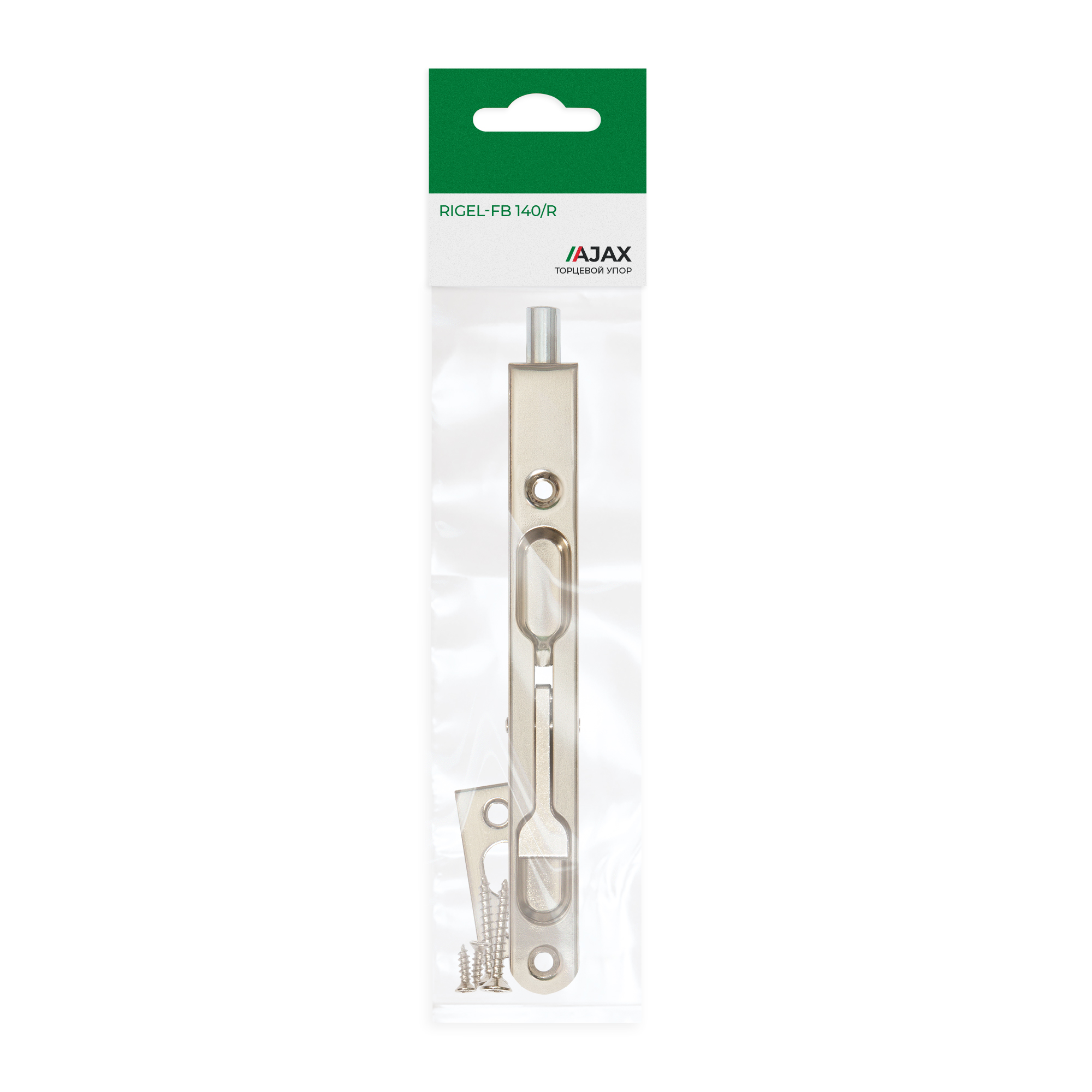 Упор торцевой AJAX RIGEL-FB 140 предназначен для фиксации пассивной створки распашной двухстворчатой двери. Может быть установлен как на верхнюю, так и на нижнюю часть створки. Фиксация створки дверного полотна весом до 30 кг допускается одним ригелем; более 30 кг рекомендуется использовать пару ригелей.