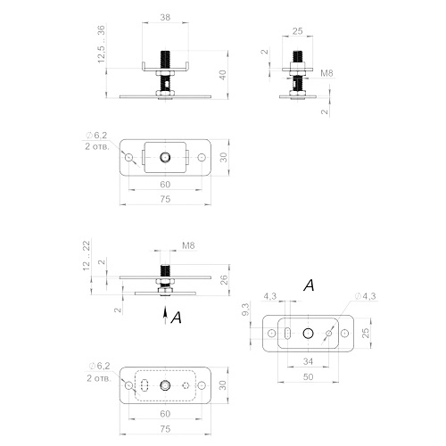 Комплект монтажных пластин для установки дополнительного стационарного полотна в систему Comfort-PRO.PROF\Telescope. Материал изготовления: Сталь.