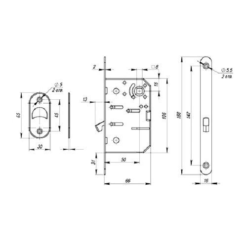 В комплект входит: ручки для раздвижных дверей, пластиковый вкладыш, торцевой захват, защелка для раздвижных дверей, ответная планка, крепежный комплект, шаблон для монтажа. Материал изготовления - цинковый сплав (ZAMAK)