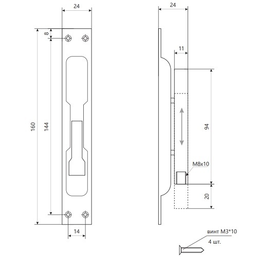 Торцевой шпингалет для металлических дверей. Материал - оцинкованная сталь. Линия продукции: Standard.