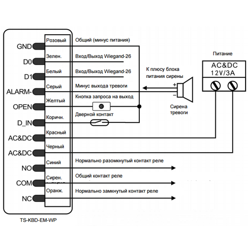 | Выход тревоги | 3А |