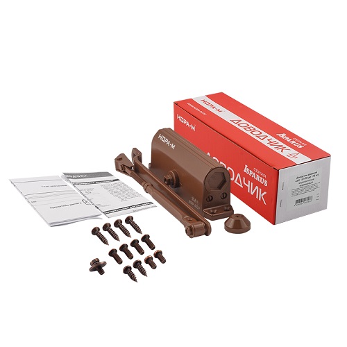 Для удобства монтажа доводчик комплектуется двумя типами крепежа — для деревянных/пластиковых и для металлических дверей. В индивидуальной упаковке находится подробная инструкция и шаблон для установки.