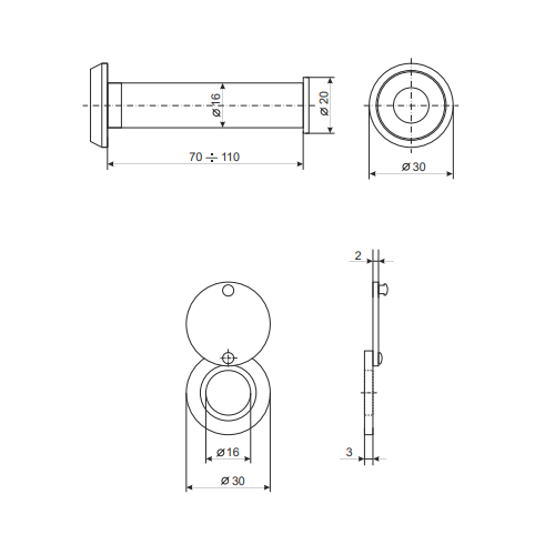 Дверной глазок APECS 3016/70-110-CR со шторкой на входные двери толщиной от 70 до 110 мм с максимальным углом обзора 180 градусов.