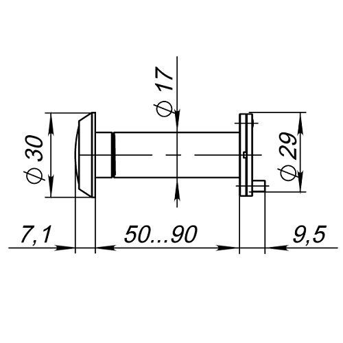 Дверной глазок Punto DVP1 предназначен для установки в двери толщиной от 50 мм до 90 мм. Материал изготовления: пластик. Оптика: пластик. Диаметр глазка: 16 мм. Угол обзора: 160 градусов. Цвет: хром. Шторка в комплекте.