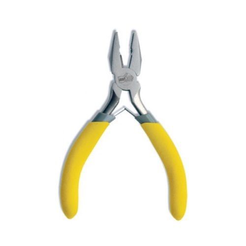 Плоскогубцы комбинированные ("мини"). Инструментальная легированная сталь. Полированная поверхность. Никелированное покрытие. Двухкомпонентные обливные ручки. Подпружиненные ручки. Закаленные режущие кромки током высокой частоты. Длина 120 мм.