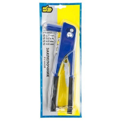 Заклепочник 240 мм (6872020) 2,4 / 3,2 / 4,0 / 4,8 мм усиленный. В комплект входят 4 сменные насадки. Обрезиненная ручка. Длина 240 мм. Размер используемых заклепок 2,4/ 3,2/ 4/ 4,8 мм.