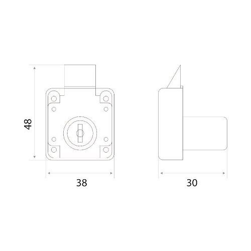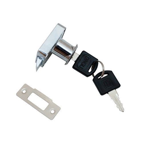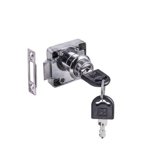 Замок мебельный для установки на распашные двери или ящики. Ответная изогнутая планка в комплекте.