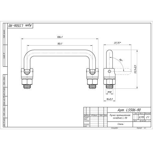 Ручка промышленная складная L-90 цельнометаллические с поворотным креплением. Изделие крепится на шпильки.