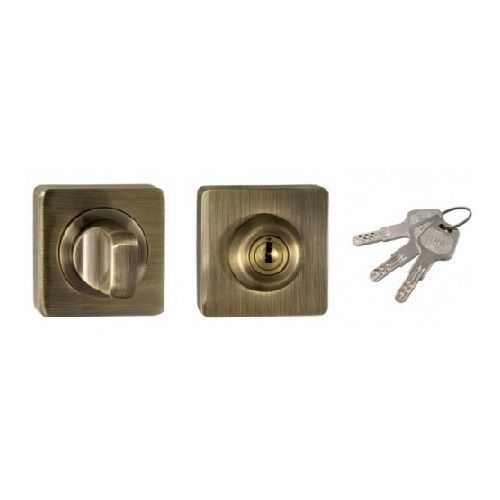 Задвижка RENZ BK-K 02 AB (бронза античная) с ключом подойдет для использования в комплекте с задвижкой или защелкой WC. Выполнена на квадратной розетке в актуальном цвете бронза античная. Модель изготовлена из сплава ЦАМ, поэтому сохраняет великолепный внешний вид и эксплуатационные свойства долгое время. В комплекте 3 профильных ключа.
