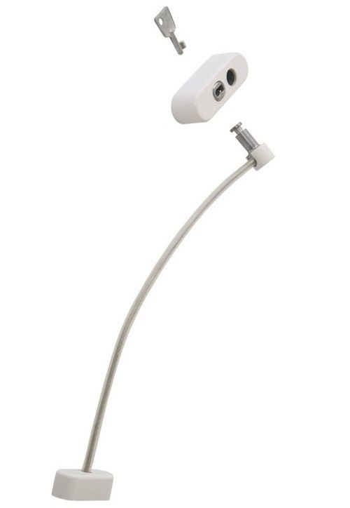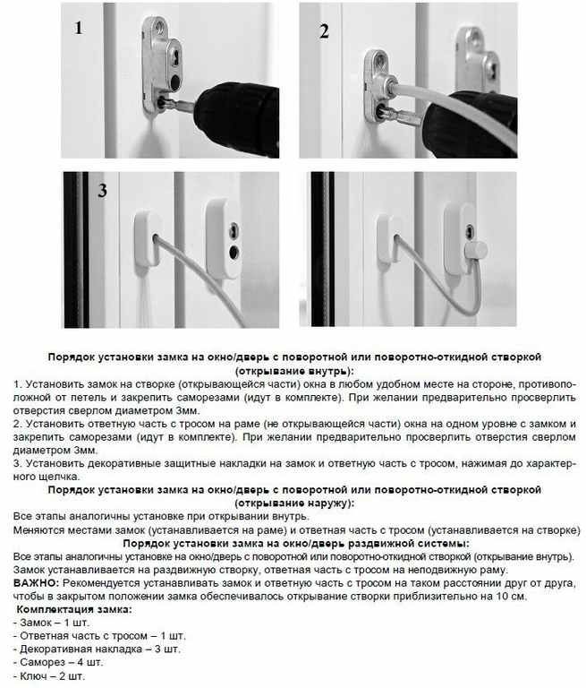 Замок с тросиком работает по принципу дверной цепочки, ограничивая распахивание окна в полной мере, но позволяя открывать для проветривания. Таким образом окна становятся безопасными с точки зрения выпадения детей и как защита от взлома.