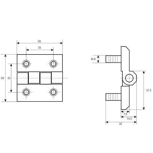 Петля 082 60 х 60 М8 усиленная чёрного цвета. Материал корпуса - сплав ЦАМ, материал штифт - оцинкованная сталь. Для эффективной защиты от коррозии и негативных внешних факторов, петля покрыта порошково-полимерной краской чёрного цвета. Угол разворота: 270 градусов.