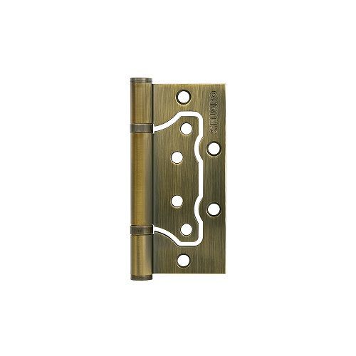 Универсальная дверная петля без врезки Fuaro 500-2BB изготовлена из стали. Предназначена для установки на деревянные двери, подходит для дверей правого и левого открывания. Не требует врезки. Гальваническое покрытие прошло тест на устойчивость к коррозии в соляном тумане - более 96 часов, что соответствует высшему 4 классу стойкости покрытия. Края петель прошли дополнительную полировку. В петле 500-2BB установлены два внутренних подшипника и стальной стержень, что обеспечивает 1 млн циклов открывания/закрывания. Благодаря двум опорным подшипникам, петля устойчива к проседанию. Максимальная нагрузка на 2 петли 35 кг, на 3 петли 45 кг. Размер петли: 100x2,5. Цвет: матовая бронза. Саморезы в комплекте. Гарантия: 5 лет.