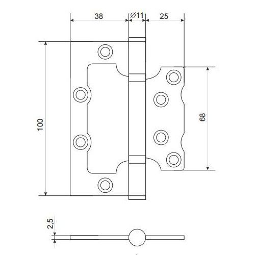 Петля дверная накладная APECS 100х75х2,5-B2-STEEL-AB ( 1 штука )