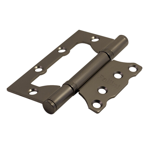 Петля PALLINI стальная универсальная без врезки PFH 100 х 75 х 2,5 2BB в цвете матовый черный никель. Универсальная петля PALLINI изготовлена из стали. Предназначена для установки на деревянные межкомнатные двери, подходит для дверей правого и левого открывания. Гальваническое покрытие прошло тест на устойчивость к коррозии в соляном тумане - более 96 часов, что соответствует высшему 4 классу стойкости покрытия. В петлях установлены два внутренних подшипника и стальной стержень, что обеспечивает мягкость хода, устойчивость к проседанию (смещению) и сохранение потребительских свойств в течение длительного периода времени. Максимальная нагрузка на 2 петли 30 кг, на 3 петли 40 кг. Размер петли: 100 x 70 х 2,5. Комплектация: петля 1 шт. + 8 саморезов.