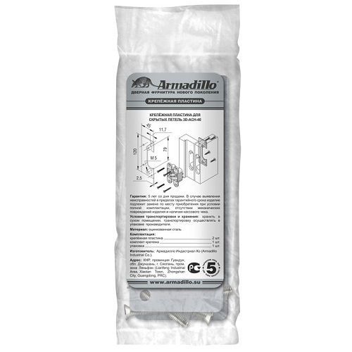 Крепёжная пластина Armadillo (Армадилло) для петли скрытой установки с 3D-регулировкой Architect 3D-ACH 40 (2 шт.) устанавливается со скрытыми петлями как дополнительное усиление дверной коробки в области крепления петель.