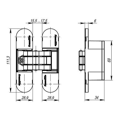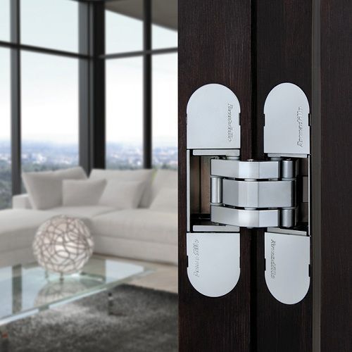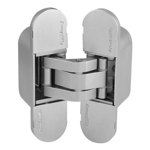 Невидимы на закрытой двери и обеспечивают угол открывания до 180 градусов. Бесшумны и плавны в работе за счёт нейлоновых вставок на подвижной части конструкции. Легко регулируются в трех плоскостях уже после завершения монтажа.
