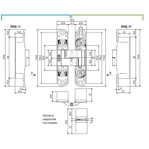 Универсальная петля скрытой установки для левых и правых дверей. Невидима снаружи, изысканна в дизайне двери. Регулируется в трёх плоскостях: по горизонтали, высоте и прижатию. Нагрузка до 40 кг на две петли, до 60 кг на три петли. Стильное и доступное решение от AGB (Италия) - мирового лидера в производстве качественной фурнитуры для деревянных дверей. В наименовании петли указан цвет: бронза . На самом деле цвет петли: темно-коричневый . Прекрасно сочетается с дверным полотном цвета "ВЕНГЕ" или "ОРЕХ" .