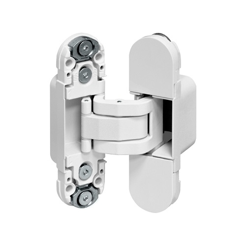 Eclipse 2.2 - универсальная петля скрытой установки для левых и правых дверей, с уменьшенной толщиной до 21 мм в коробку. Регулируется в трёх плоскостях: по горизонтали ±1,5 мм, высоте ±2 мм и притвору ±1 мм. Нагрузка до 60 кг на две петли, до 80 кг на три петли. Петля открывается на 180° и может использоваться с доводчиком. Декоративные накладки в комплекте. Материал: ЦАМ. Цвет: белый.