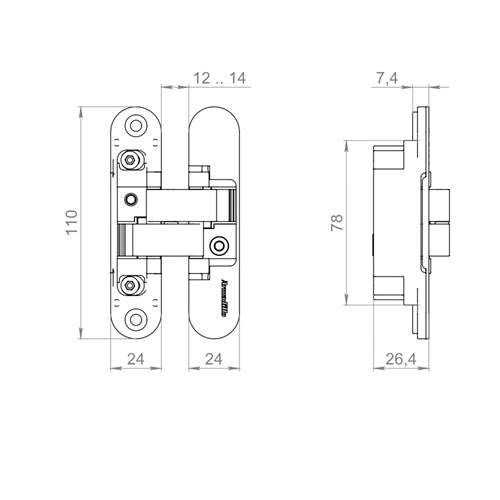 Скрытые петли Armadillo U3D1500 подходят для установки в деревянные межкомнатные двери и двери с алюминиевой кромкой.