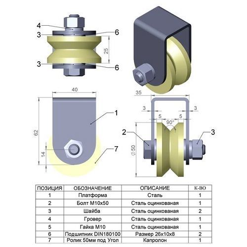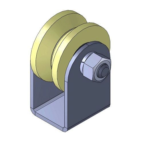 Ролик капролоновый используется для устройства раздвижных уличных оград (откатных ворот). В качестве направляющей используется уголок, который устраивается на бетонное основание. Ролик оснащен двумя подшипниками.