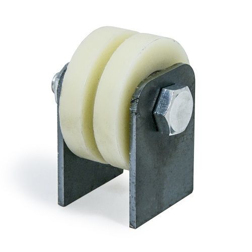 Ролик капролон используется для устройства откатных ворот. Пластины ролика привариваюся к нижней раме ворот. В качестве направляющей используется полоса из металла, которая устраивается на бетонное основание. Ролик оснащен двумя качественными подшипниками.