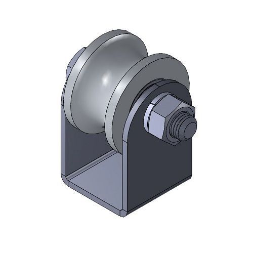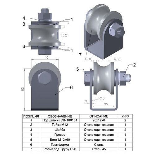 Ролик используется для устройства раздвижных (откатных) уличных оград. В качестве направляющей используется труба 1/2", которая устраивается на бетонное основание. Ролик оснащен двумя подшипниками.
