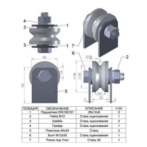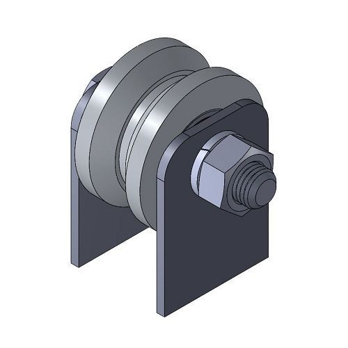Ролик используется для устройства раздвижных (откатных) уличных оград. В качестве направляющей используется уголок, который устраивается на бетонное основание. Ролик оснащен двумя подшипниками.