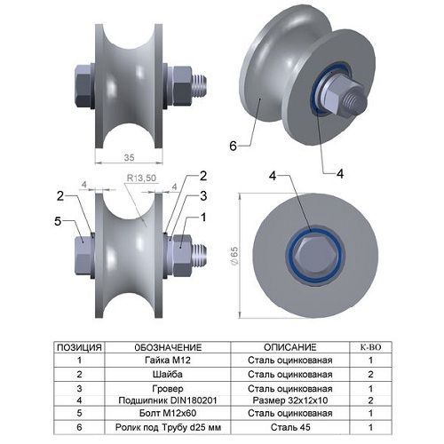 Ролик используется для устройства раздвижных (откатных) ворот. В качестве направляющей используется труба d 3/4"(25мм), которая устраивается на бетонное основание. Ролик оснащен двумя подшипниками.
