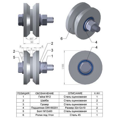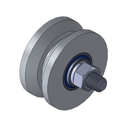 Ролик используется для устройства раздвижных (откатных) ворот. В качестве направляющей используется уголок, который устраивается на бетонное основание. Ролик оснащен двумя шариковыми подшипниками.