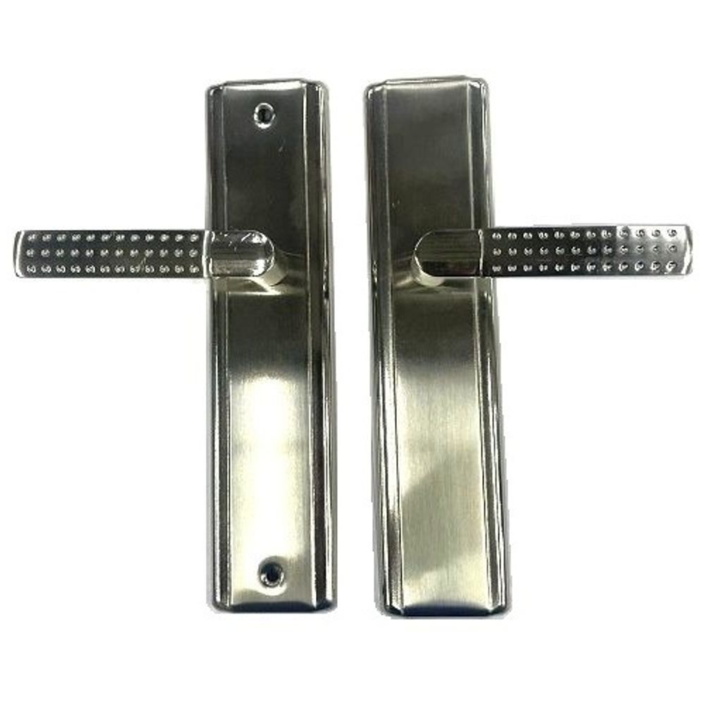 Нестандартные дверные ручки для китайских дверей. Планка не имеет отверстия для цилиндрового механизма. Данный комплект ручек применяется на дверях где нет необходимости изоляции помещения от посторонних лиц.