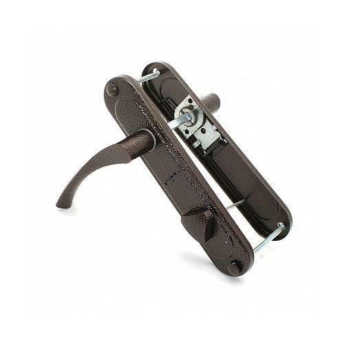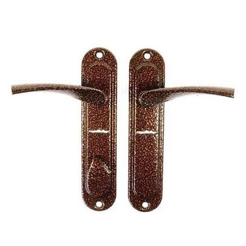 Комплект ручек на планке под сувальдный механизм. Материал – сталь, полимерное покрытие “медный антик”. Со шторкой и вертушкой. Межосевое расстояние – 42 мм (от механизма до ручки), 47 мм (от механизма до вертушки). Размеры планки – 43 х 210 мм. Классическая ручка длиной 110 мм. В комплект входят винтовые стяжки и квадрат 8х8 мм. Дверь открываем на себя вправо.