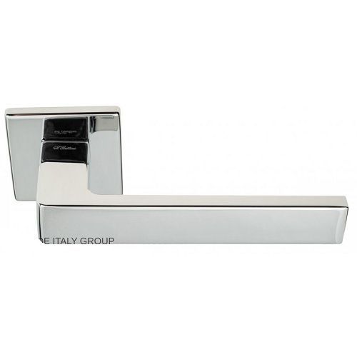 Итальянская дверная ручка фабрики "Fratelli Cattini" модель "BOOM" 8FS-CR (полированный хром) на квадратном основании. Материал ручек - ЦАМ (сплав цинка, алюминия, магния и меди).