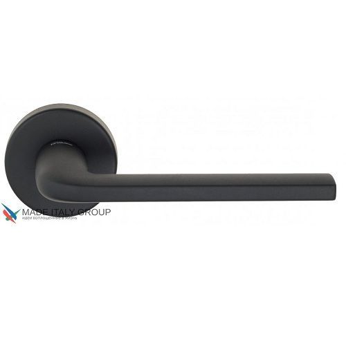 Итальянская дверная ручка на круглом основании "Fratelli Cattini" модель "LINEA" 7-NM (матовый черный) из коллекции итальянского бренда.