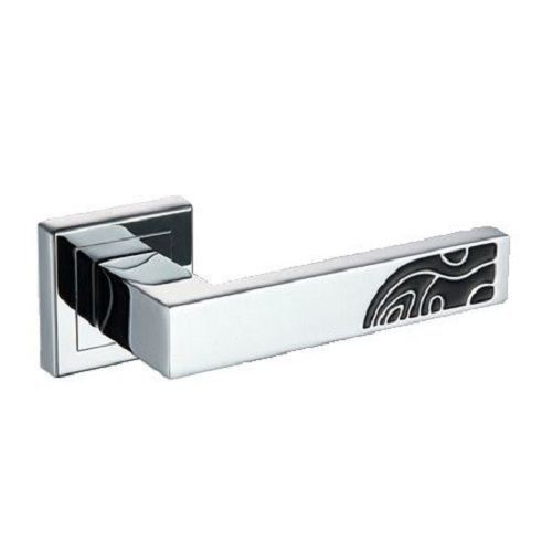 Комплект дверных ручек в цвете хром, с рисунком черного цвета. Стиль - современный, строгий дизайн.