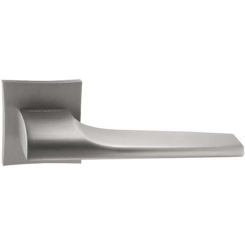 Оттенок супер-матовый никель напоминает серебро, поэтому выглядит элегантно и органично вписывается во многие современные интерьеры. Дизайн модели далек от вычурного, в нем преобладают красивые изгибы, а сама ручка крепится на квадратную розетку в аналогичном стилистическом исполнении.