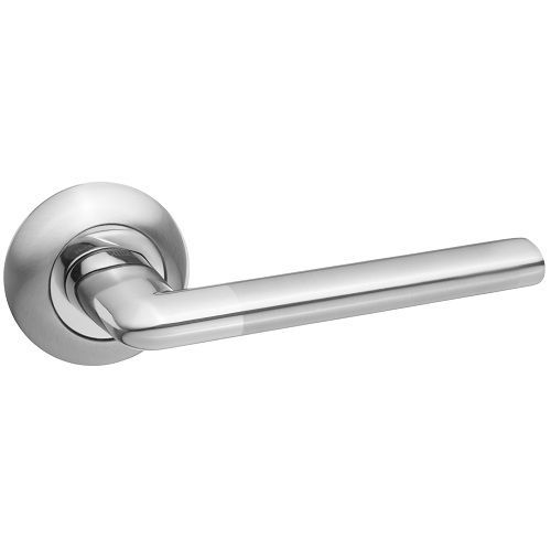 Дверная ручка RENZ 19-08 SN/NP серии "Тренто" (никель матовый/никель блестящий) на круглом основании. Материал ручек - ЦАМ (сплав цинка, алюминия, магния и меди).