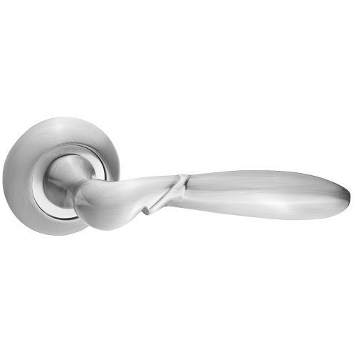 Ручка дверная RENZ 26-08 SN/NP серии "Калабрия" (никель матовый/никель блестящий) из высококачественного сплава. Материал - ЦАМ (сплав цинка, алюминия, магния и меди).