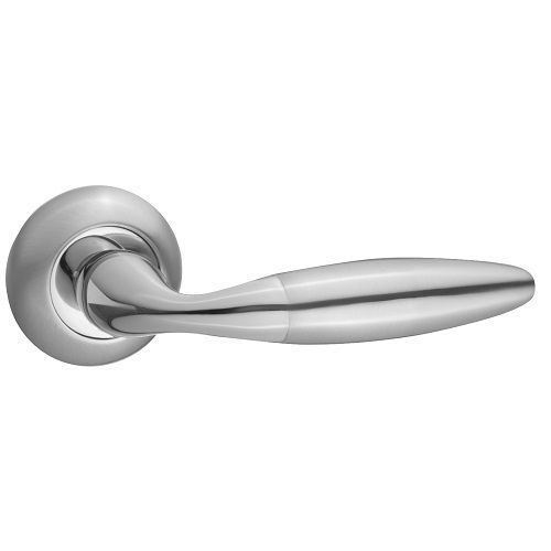Дверная ручка RENZ 28-08 SN/NP модель "Сезар" (никель матовый/никель блестящий) из высококачественного сплава. Материал - ЦАМ (сплав цинка, алюминия, магния и меди).