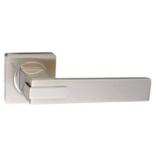 Ручка дверная RENZ 301-02 SN/NP модель "Катания" (никель матовый/никель блестящий) на квадратном основании. Материал ручек - ЦАМ (сплав цинка, алюминия, магния и меди).