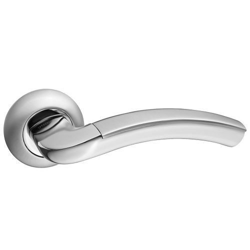 Дверная ручка RENZ 37-08 SN/NP модель "Сицилия" (никель матовый/никель блестящий) на круглом основании. Материал ручек - ЦАМ (сплав цинка, алюминия, магния и меди).