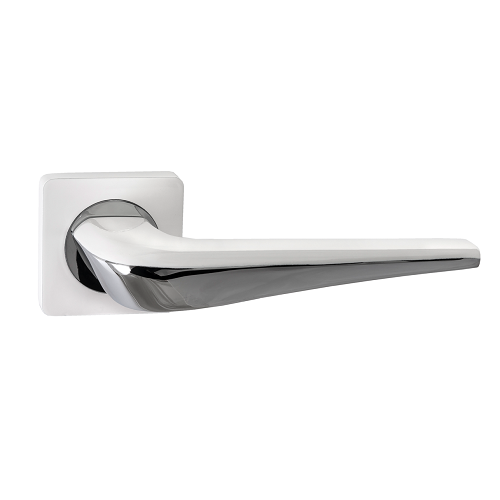 Ручка дверная RENZ 425-02 SW/CP модель "Фиоре" (супер белый/хром блестящий) превосходного качества и дизайна по доступной цене. Материал ручки - австралийский ЦАМ (сплав цинка, алюминия, магния и меди).