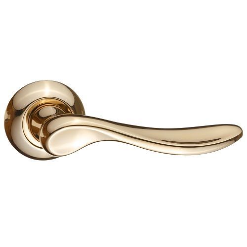 Дверная ручка RENZ 430-08 DGP серии "Фелиса" выгодно выделяется на фоне других элементов фурнитуры «под золото» благодаря плавным, округлым линиям, которые усиливают сияние.