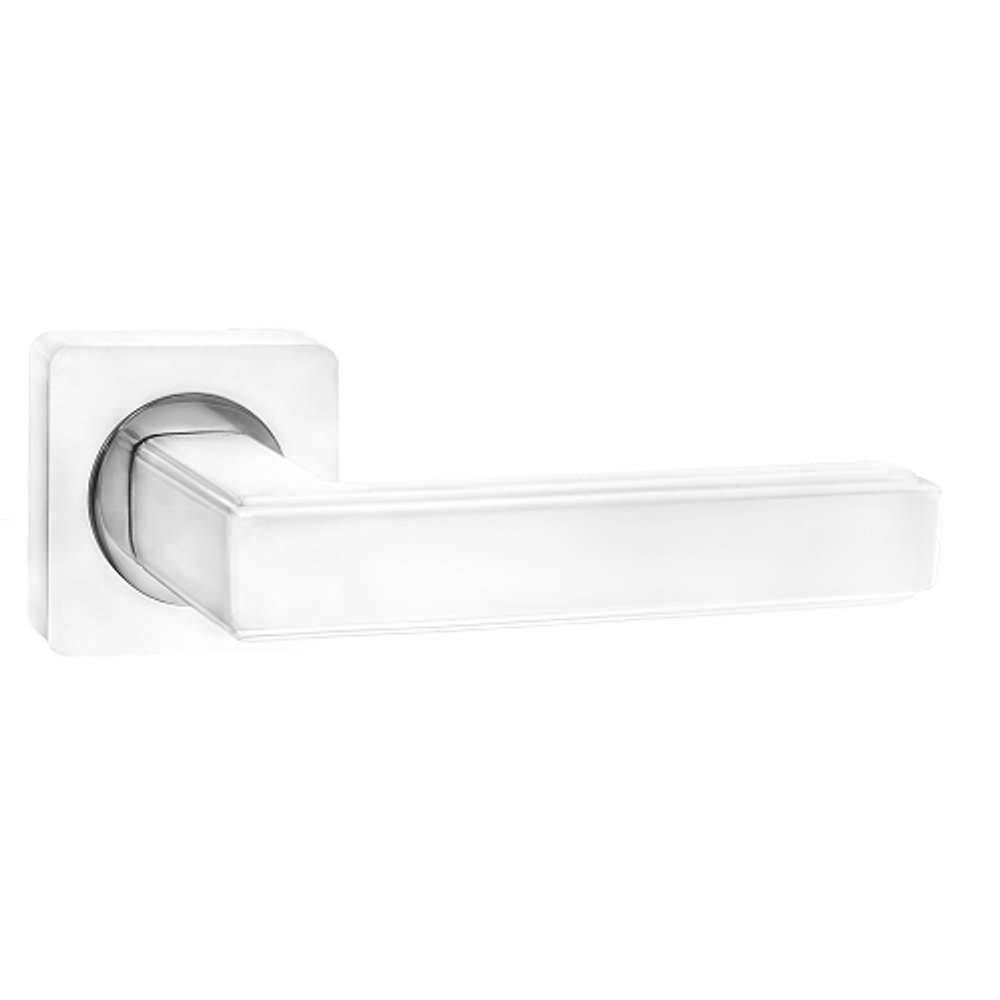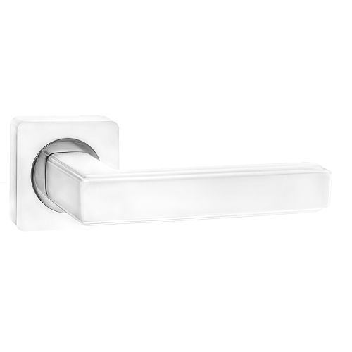 Дверная ручка RENZ 96-02 MSW/CP-2 модель "Арона" БЕЗ ПОЛОСЫ (матовый супер белый) превосходного качества и дизайна по доступной цене. Материал ручки - австралийский ЦАМ (сплав цинка, алюминия, магния и меди).