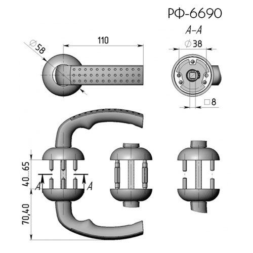 Предназначены для установки на корпус замка КРИТ-М ЗВ-А8, а так же на все остальные замки и на все типы дверей как металлических, так и деревянных. Розетка ручек «66» и сами ручки «90» выполнены из высококачественного цинкового сплава с гальванопокрытием. Максимальный угол поворота ручек 45 град. Соединительный квадрат между ручками металлический сечением 8х8мм. Ручка удобна в использовании, имеет полукруглое сечение с закругленными гранями и является симметричной относительно продольной плоскости. На внутренней полукруглой поверхности ручки размещен «Бугорок», который отделяет размещение указательного пальца руки от остальных пальцев. Эта отличительная особенность подчеркивает в ручках индивидуальность и изысканность. Используйте дополнительную возможность ручки - поднимать вверх. Такая функция реализована в ручках РФ-6690 для возможности их использования с замками КРИТ-М ЗВ-А8. В ручках размещена универсальная пружина кручения, которая позволяет использовать ее при поворотах вниз (нажатие - для открывания защелки замка) так и при поворотах наверх (закрытие всех ригелей замка А8).