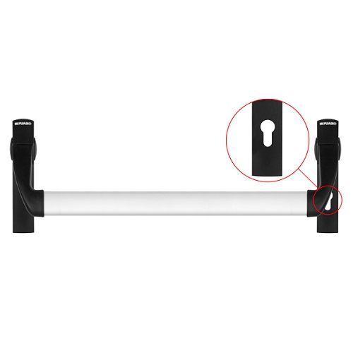 Ручка-штанга нажимная 1300А для антипаники врезной для одностворчатой двери предназначена для установки на эвакуационные двери в паре с замком FL-0433 ANTI-PANIC. Ручка-штанга нажимная 1300А является устройством легкого и быстрого открывания двери в случае возникновения чрезвычайной ситуации, которое позволяет открыть дверь изнутри нажатием на штангу. Система позволяет легко открыть дверь изнутри при эвакуации, в том числе в условиях темноты, задымления, с занятыми руками, и покинуть помещение. Также данная система предотвращает риск возникновения давки перед дверью, так как дверь будет открыта от нажатия рукой или любой частью тела на штангу системы. Закрывание цилиндра изнутри и снаружи, при этом с внешней стороны дверь может быть закрыта на ключ, но изнутри в любом случае откроется от нажатия. Материал изготовления: сталь/пластик/алюминий. Наработка на отказ: более 200 000 циклов. На внешнюю сторону двери рекомендуется установка Ручки на планке DH-0431/2 для антипаники (1300А, 1700A) - без пружины (ID 41403).