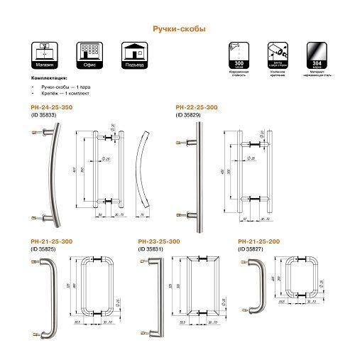 Дверная Ручка-скоба PH-22-25/300-INOX из нержавеющей стали предназначены для установки на внутренние и наружные металлические, профильные и деревянные двери, на двери подъездов и технические двери с одной или с двух сторон. Благодаря наличию специальных силиконовых прокладок могут устанавливаться и на стеклянные двери. Устойчивы к механическим и климатическим нагрузкам. Диаметр трубы 25 мм. Межосевое расстояние 300 мм.