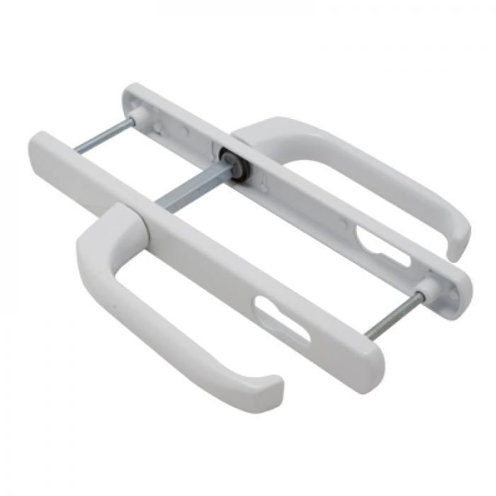 Комплект дверных ручек на планке, для профильных дверей. Межосевое расстояние 85 мм, ширина планки 25 мм. Материал ручек - алюминий, цвет - белый.