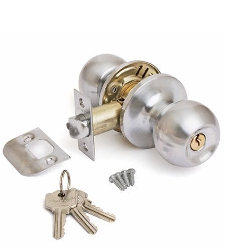 Ручка-защелка для межкомнатных дверей. Форма ручки - кнопка, круглая. Материал - сталь, гальваническое покрытие. Предназначена для дверей толщиной 35-45 мм. Регулируемое расстояние от края двери до оси ручек 60-70 мм. В комплекте 3 ключа.