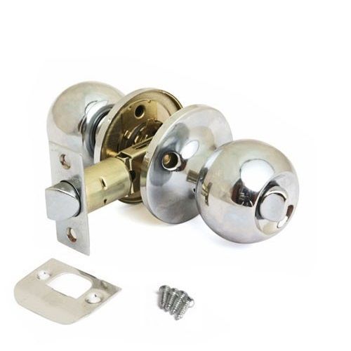 Ручка-защелка с фиксатором, для межкомнатных дверей. Форма ручки - кнопка, круглая. Материал - сталь, гальваническое покрытие. Предназначена для дверей толщиной 35-45 мм. Регулируемое расстояние от края двери до оси ручек 60-70 мм.