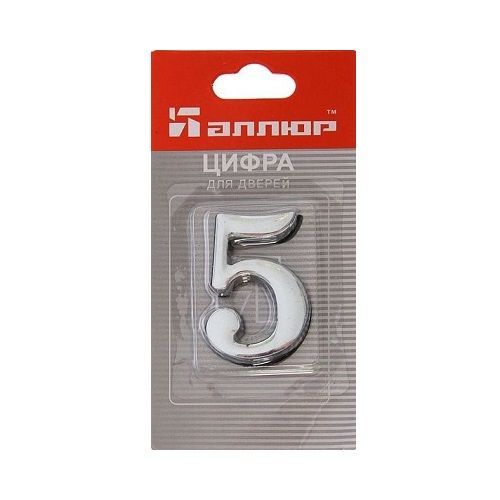 Цифра "самоклейка" дверная металлическая АЛЛЮР "5" хром